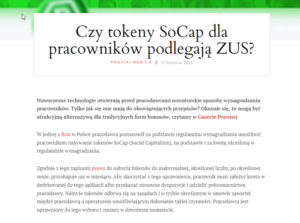 Dla pracodawców Zoptymalizuj koszty i zwiększ zyski SoCap Bonus Media o nas Gazeta KrakowskaW artykule opublikowanym na łamach Gazety Krakowskiej poruszono temat tzw. „trójkąta umów” – modelu zatrudnienia, który w obliczu rosnących kosztów pracy bywa wykorzystywany przez firmy do optymalizacji wydatków, ale jednocześnie może generować poważne ryzyka prawne, w tym odpowiedzialność karną członków zarządu. W kontekście tych zagrożeń wskazano SoCap Bonus jako rozwiązanie, które pozwala firmom budować atrakcyjny system wynagradzania i benefitów w sposób bezpieczny i zgodny z przepisami – bez konieczności sięgania po ryzykowne konstrukcje prawne. Puls BiznesuWyroki sądów dwóch instancji potwierdziły, że w przedstawionym modelu token SoCap nie powinien być wliczany do podstawy wymiaru składek ZUS. Sprawa stała się ważnym przykładem tego, jak prawo jest interpretowane w odniesieniu do nowych, cyfrowych form benefitów pracowniczych. Zapraszamy do lektury artykułu opisującego przebieg sprawy i znaczenie orzeczeń. Nowoczesne Prawo PracyArtykuł przedstawia opinię prawną dotyczącą statusu regulacyjnego tokenu SoCap i wskazuje, że jako token użytkowy funkcjonujący w zamkniętym programie benefitowym może on być traktowany podobnie do bonu lub narzędzia lojalnościowego. W analizie wyjaśniono, że w takim modelu token nie spełnia definicji instrumentu finansowego ani waluty wirtualnej, a także może korzystać z wyłączeń przewidzianych w regulacjach takich jak MiCA, AML czy przepisy o usługach płatniczych, co ogranicza zakres nadzoru regulacyjnego. Gazeta PrawnaSądy, w tym Sąd Apelacyjny w Warszawie, potwierdziły w wyrokach, że w analizowanym modelu świadczenie w postaci tokenów nie stanowi podstawy wymiaru składek ZUS. W uzasadnieniach wskazano również, że spór wynikał z błędnej interpretacji przepisów i niewłaściwego rozumienia pojęć przez organ rentowy. Szczegóły sprawy i argumentację sądów opisano w artykule – zapraszamy do lektury. InforLexSąd Apelacyjny w Warszawie w wyroku z 2025 r. potwierdził, że w analizowanym modelu cyfrowy benefit w postaci tokenów SoCap nie stanowi podstawy wymiaru składek ZUS. Sprawa była efektem sporu z organem rentowym, a orzeczenie uznano za istotne dla praktyki wynagradzania i stosowania nowych form benefitów opartych na technologii blockchain. Całość omówienia i komentarz do wyroku znajdziesz w artykule InforLex. SSW SolutionsArtykuł przedstawia analizę prawną dotyczącą tokenów SoCap jako cyfrowego benefitu pracowniczego oraz wyjaśnia, w jakich okolicznościach świadczenie tego typu może pozostawać poza podstawą wymiaru składek ZUS. Autorzy omawiają argumentację prawną, interpretacje przepisów oraz znaczenie sprawy dla pracodawców rozważających wdrażanie nowoczesnych form wynagradzania. Zapraszamy do przeczytania artykułu. WP financeTokeny SoCap są traktowane jako benefit pracowniczy, który – przy spełnieniu określonych warunków – nie stanowi podstawy wymiaru składek ZUS. To przykład, jak nowe technologie zmieniają podejście do wynagradzania pracowników. Szczegóły opisano w artykule WP finanse – zapraszamy do lektury. Gazeta PrawnaArtykuł omawia znaczenie wyroków sądów, które potwierdziły, że w analizowanym modelu token SoCap może pozostawać poza podstawą wymiaru składek ZUS, a także pokazuje szerszy kontekst regulacyjny, w tym wpływ unijnego rozporządzenia MiCA i rozwój cyfrowych benefitów pracowniczych. Zapraszamy do przeczytania artykułu. Business JournalTokenizacja otwiera przed pracodawcami nowe możliwości wynagradzania, które – przy odpowiedniej konstrukcji – mogą nie podlegać składkom ZUS. W Business Journal pojawił się artykuł, w którym szczegółowo wyjaśniono podstawy prawne i praktyczne zastosowanie tokena SoCap w systemach wynagradzania – zapraszamy do lektury całości.